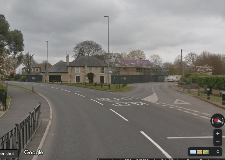 The image from G-Maps gives you a view from the A10 heading towards Cambridge – essentially it’s in full view of the road.