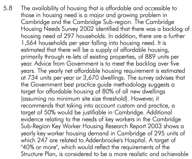 The Cambridge Local Plan 2006 had an affordable housing requirement of 40% for developments with over 15 units. And developers used every trick in the book to avoid having to meet it – such as the viability assessments loophole.