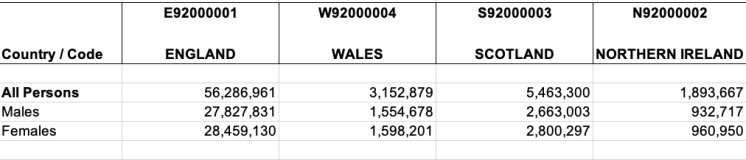Before getting into the detail of this, it’s worth comparing populations. I pulled these mid-2019 estimates from the Office of National Statistics here.