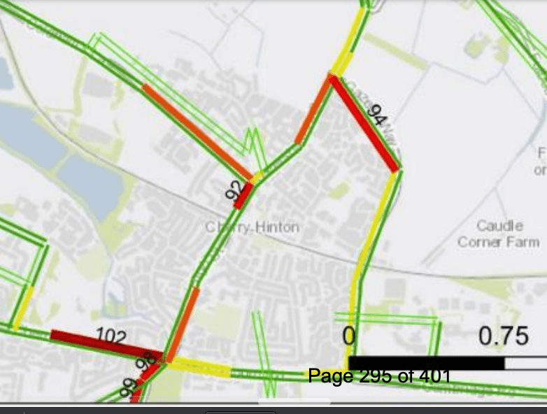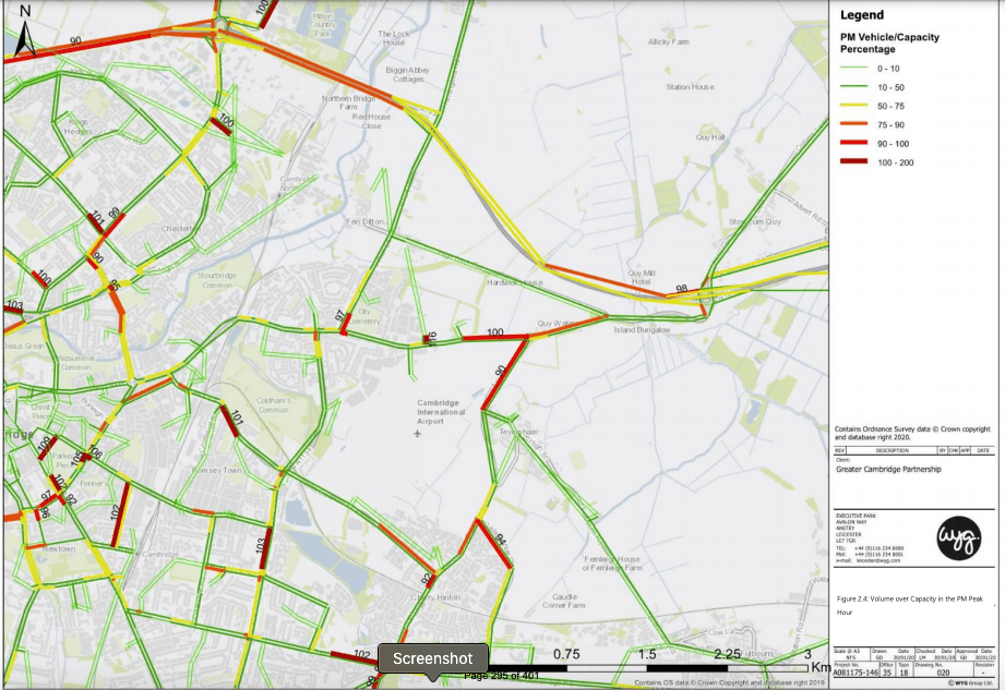 Above – capacity of roads during PM Peak. (See p294 of the Agenda Pack).