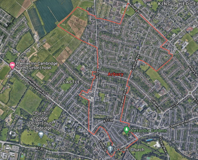 Above – Arbury Ward, historically one of the most economically deprived in Cambridge – sitting next door to Castle Ward which has a number of Cambridge University Colleges within it. Where the word “Castle” is on the map are the playing fields of Fitzwilliam College. Where Fitzwilliam College is happens to have Trinity Hall playing fields next to it. We know from evidence given to the Greater Cambridge Local Plan that a number of Cambridge colleges have green space that they consider are under used that they would like to build on. I contend that those under-used green spaces should be converted into public parks instead. If they have no need for them, the rest of the city on whom the University and its colleges depend on, have people and communities who could do with the open spaces.