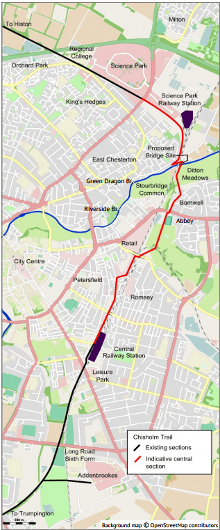 Above – via the Cambridge Cycling Campaign – the Chisholm Trail plan from 2015.