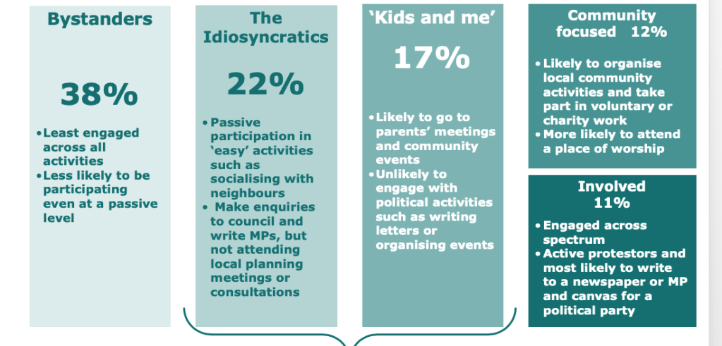 Above – Engagement segmentation – how interested in community activities are the population in any society in England?