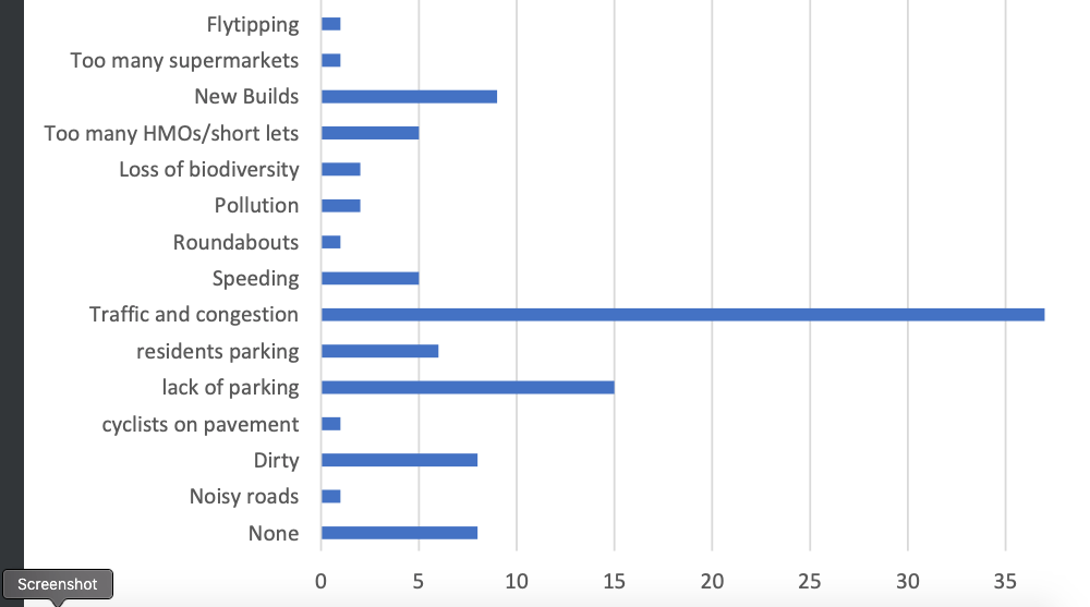 Which tells me that if the council is to carry out a post-CV19 survey of the ward – one I think needs doing for every ward in the city, it will have to rethink its approach. Only 124 people responded to that survey. Hence there’s only so much one can read into the responses. Of all of the issues raised, traffic and congestion was by far the highest.