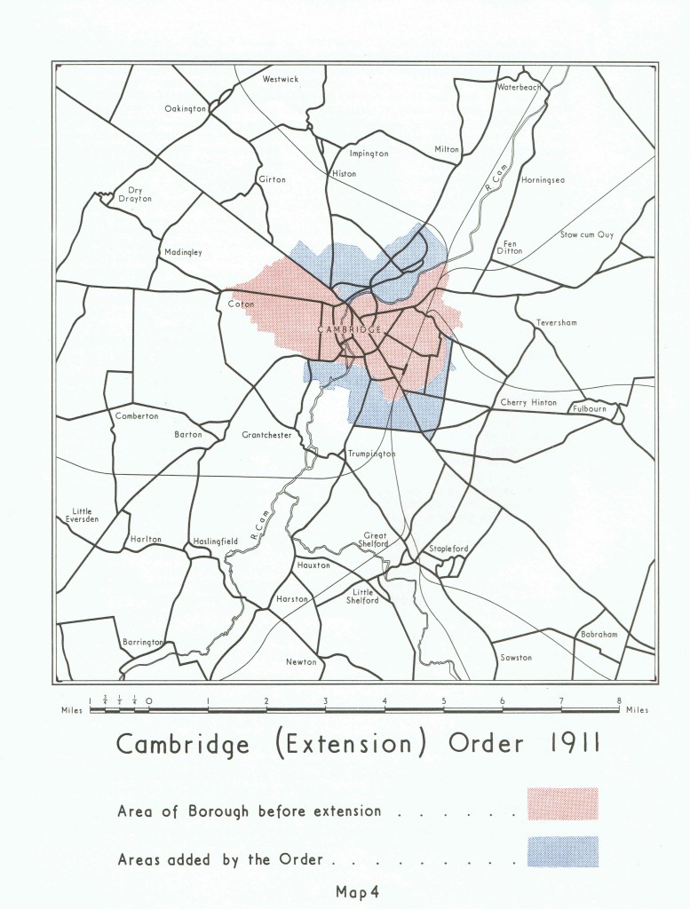 Above – any schools built in the northern blue patch before 1911 under the powers of the Education Act 1870 as amended, would have fallen under the remit of Chesterton Urban District Council.
