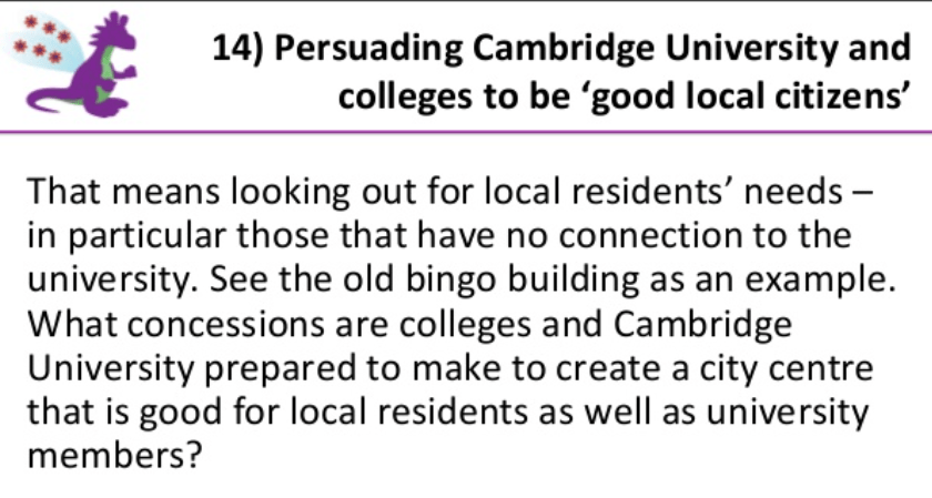 One of them included a call for Cambridge University and its colleges to be “good local citizens”.