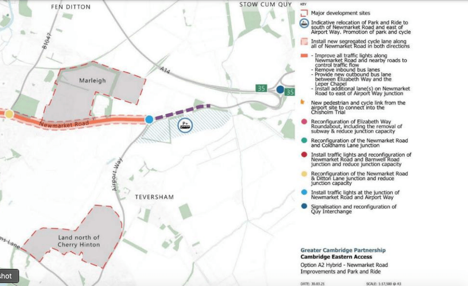 Above – this map came from a recent online meeting on Cambridge Eastern Access proposals which you can watch here. The Greater Cambridge Partnership is responsible for the Cambridge Eastern Access Project.