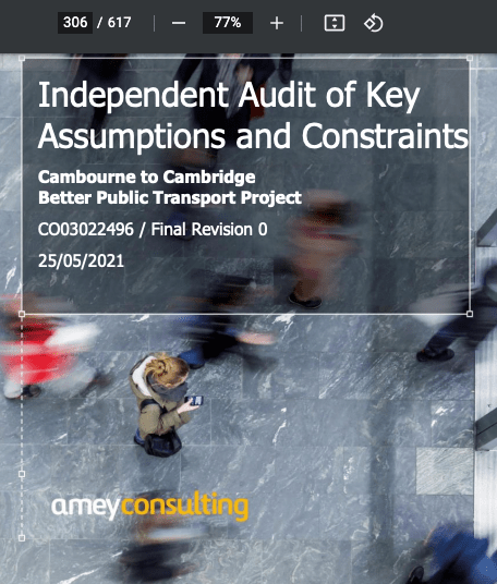 I never found out who made the judgement call to have such a narrow term of reference. Fast forward to 2021 and a number of climate targets have been moved forward – including the proposed restrictions on sale of petrol/diesel fuelled motor vehicle to 2030. Furthermore, Parliament has declared a climate emergency – as have the local councils. Lockdown has also demonstrated that the public’s mood towards valuing open green spaces and lower air pollution has risen significantly. Finally we are at the stage where there is a credible alternative to the limited technical assessment of the Haverhill-Cambridge route. And that’s before we’ve looked at the political element of the opposition to the current option that the GCP wants to go ahead with.