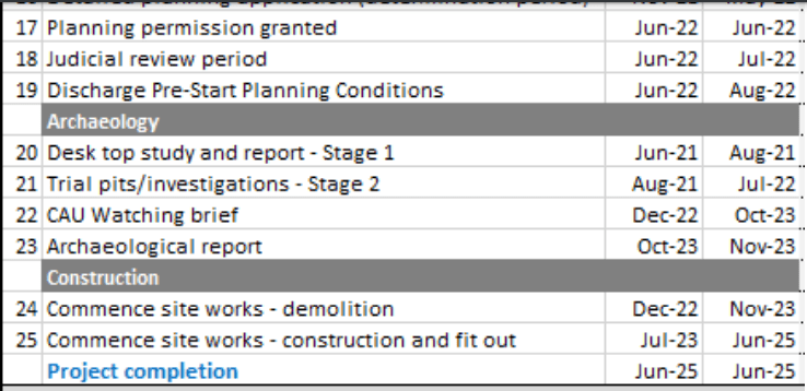 Above – the timetable proposed by the County Council.