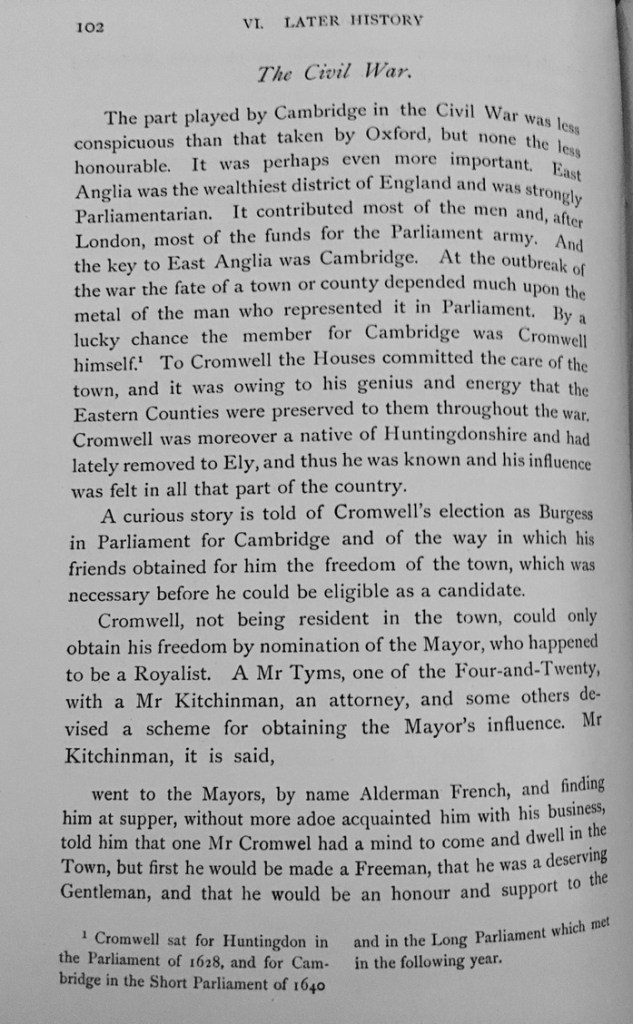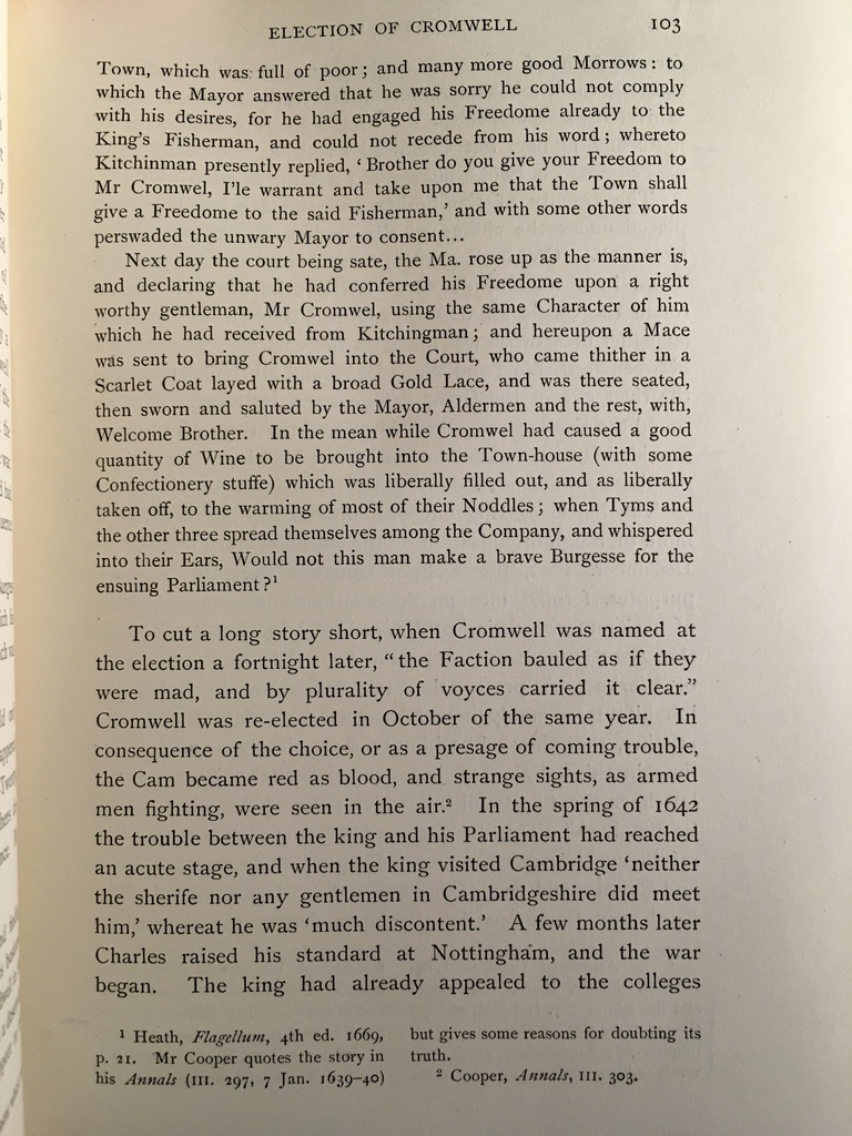 Above – Clarke & Atkinson in 1897 writing about Cromwell’s election in Cambridge, where a room full of chaps said: “You’ll do!”