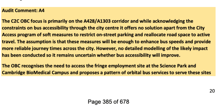 Above – comments from the GCP’s Independent Audit of the Cambourne-Cambridge Busway.