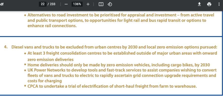 Although I put a Q to the Commissioners asking them for a stronger commitment on light rail, they refused to move from their recommendation on p22 below (top paragraph). But the recommendations that followed it are radical – banning diesel vans and trucks by 2030 from urban centres.
