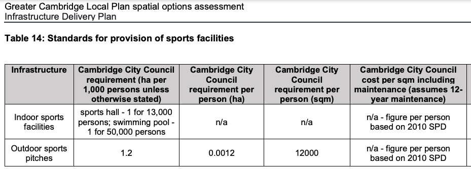 So these were their calculations on how many new sports halls and pools we’d need. But I wanted to know their assumptions. Which they mentioned below.