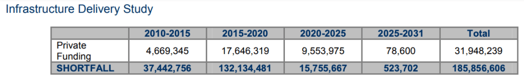 Above – the cross-boundary total estimated infrastructure costs were around £200m which, with public and private funding accounted for left just under £110m as the shortfall.