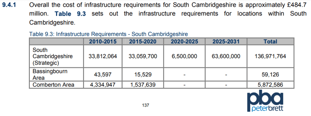 Above – from p137-8, the shortfall for South Cambridgeshire identified by Peter Brett & Associates in 2012 was £412million.