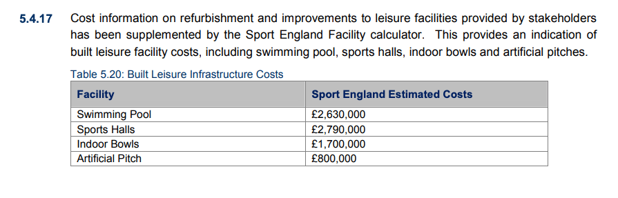 I’d like to test that assumption on the scenarios of both no public/active transport links, moderate public/active transport links, and excellent public/active travel links. Furthermore, I think you could make the case for having that sports provision attached to any of the new further education facilities that Mayor Nik Johnson has indicated he will be proposing in the not-to-distant future, so that there is daytime demand from students.