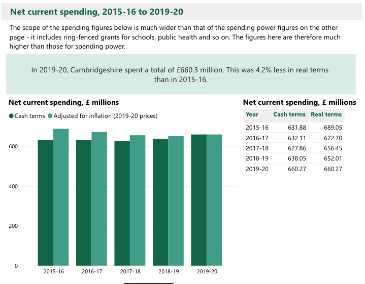 The fall from nearly £690m to £660m is a painful one given how overstretched things like social care services have been for years. Cambridgeshire Councillors argue (with good reason) that our county is underfunded – see their arguments here. It gets below-national-average funding per pupil in education, and a lower per capita amount in the general settlement. As with Cambridge City Council there is no mechanism to tax the wealth we are told that Cambridge makes and that is supposedly so vital to the economy. Ministers could if they wanted to, but they have chosen not to. This is a political decision.