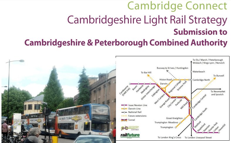 Some of you will be aware of the proposals from the Cambridge Connect Consortium – which submitted their Light Rail Strategy to the Mayor of Cambridgeshire & Peterborough, Dr Nik Johnson as part of the Local Transport & Connectivity Plan consultation.