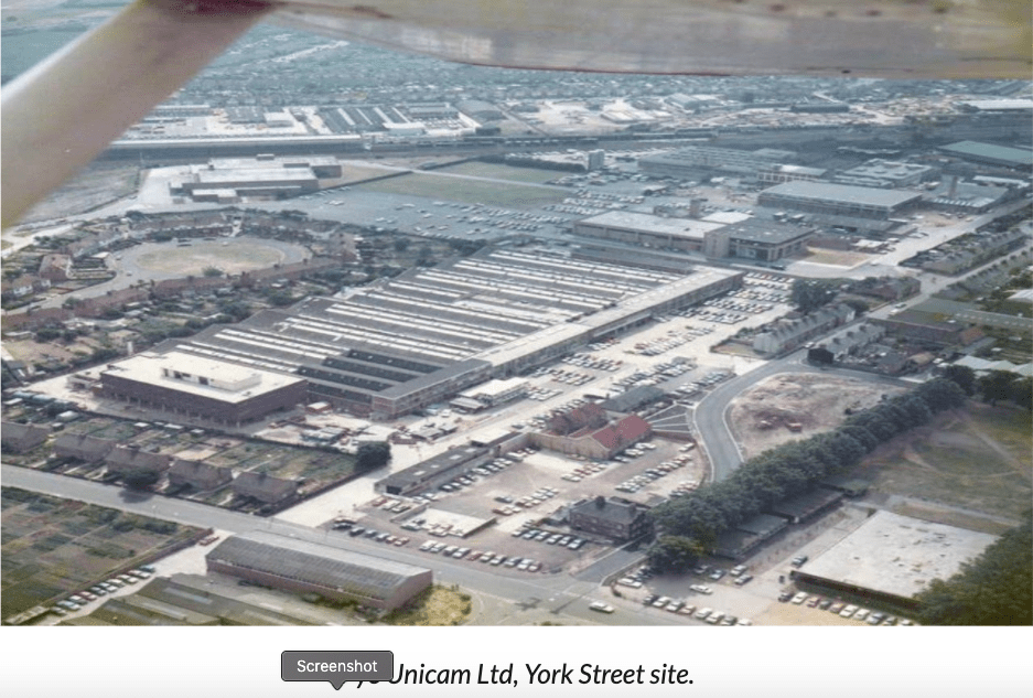 Above – from Paul Lucas – The PYE Story, the photo dating from the 1960s. You can see the Silverwood Close cul-de-sac on the left, with the then massive PYE works next to it. Just over half a century ago the site was a buzzing factory with workers bused in or who drove in from surrounding villages. And instead of the retail park we’re familiar with today, on the other side of Coldham’s lane was a derelict brickworks waiting to be demolished.