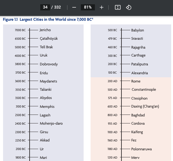 One of the most random parts of the document was the list of which cities were the biggest in the world throughout history.