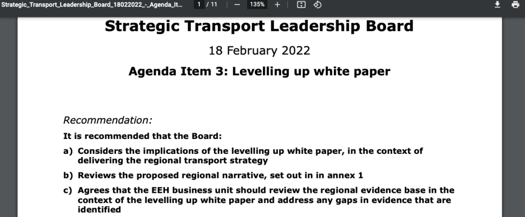 And they will be discussing the impact of the Levelling Up White Paper at their Board Meeting in…five days time!