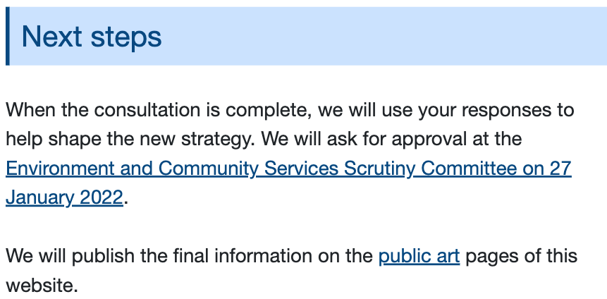 The next steps were supposed to have provided that new strategy for formal approval on 27 Jan 2022 – but the meeting papers and decision-making notes don’t indicate that such a strategy was ever debated/voted on, let alone presented to the committee.
