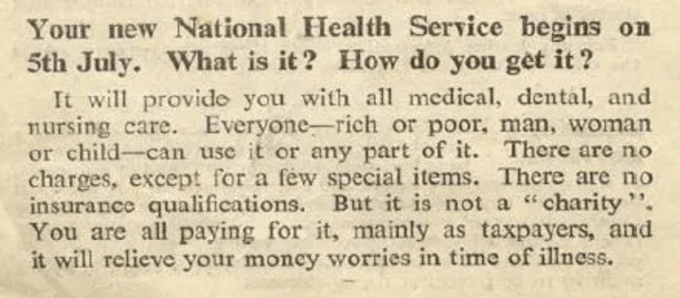 Above – from the Socialist Health Association whose predecessors were influential in winning the argument in the inter-war era of the 20th Century (see this account here) for free-at-the-point-of-use healthcare funded by the taxpayer and provided for by the state.