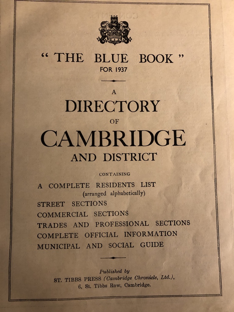 Below left – public health and welfare services from the 1960s in Cambridge, and from 30 or so years before – the old Cambridge Blue Book – a directory of who did what in town