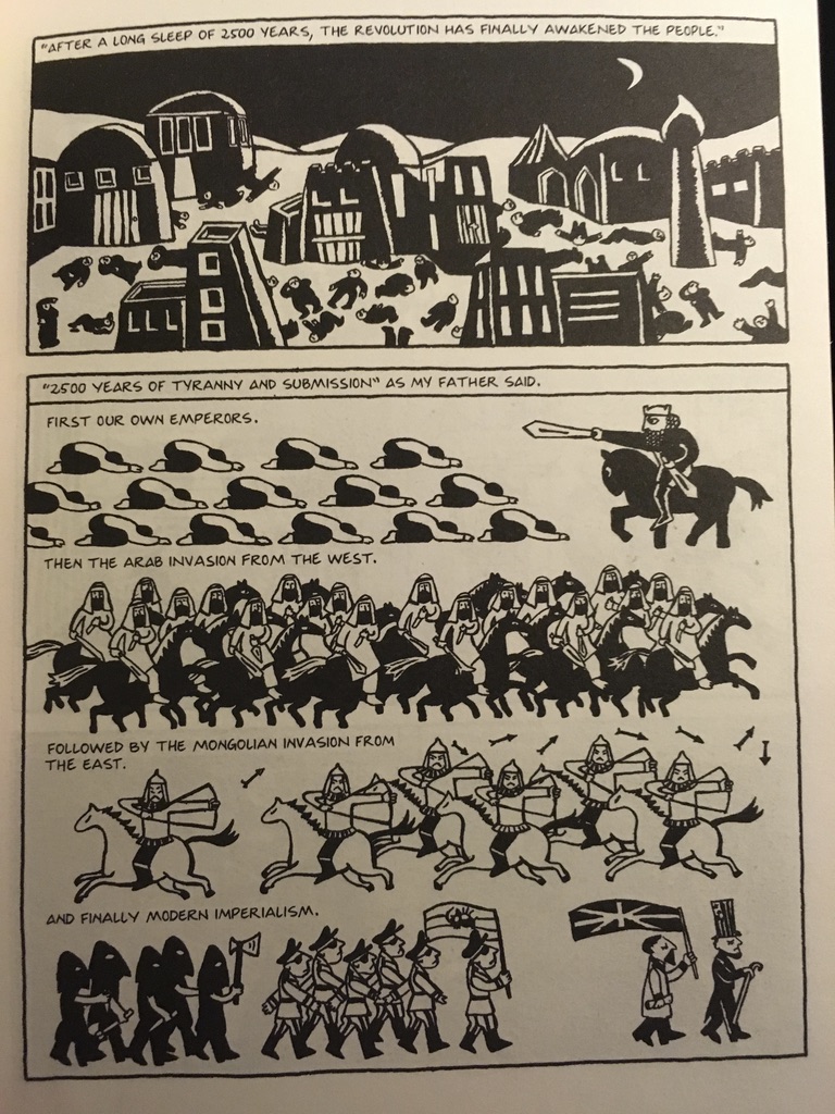 I remember when I got to university coming across ‘zine-style publications that I simply had not been exposed to before. The screengrabs below are from the brilliant book and animation Persepolis (see the trailer here).