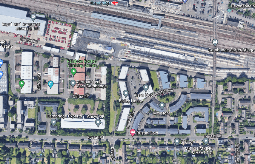 Above – from GMaps here, I can foresee property acquisitions clearing some of the warehouses of the firms on the Clifton Road estate to create a turning circle for buses, and a large cycle park for commuters.