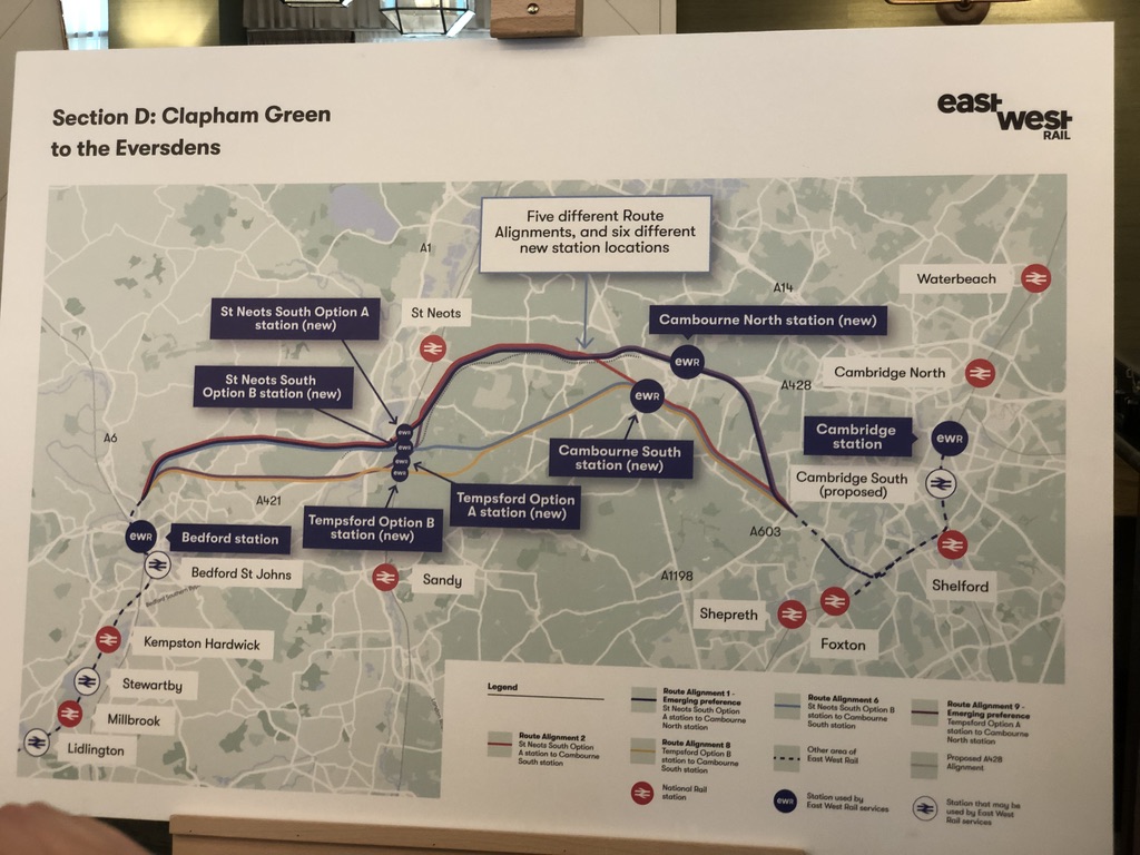 It was interesting to hear testimony from other people there about how East West Rail would mean they would not have to drive into Cambridge at all, or how it would reduce the need to change trains at London, or even enable them to get to places for day trips that are not possible with the current infrastructure.
