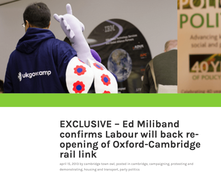 Around a decade ago I persuaded both Cambridge Labour and Cambridge Liberal Democrats to have something about re-opening the Oxford-Cambridge railway line in their county council manifestos for the 2013 elections. These were a disaster for the Conservatives who lost ten seats to UKIP. Cambridgeshire County Council with 12 UKIP councillors sounds unthinkable today.