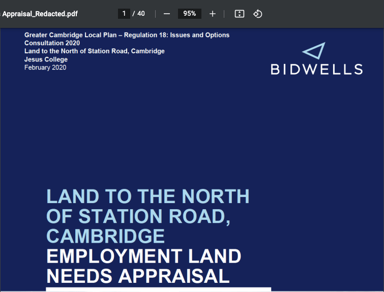 I picked out one of the documents – employment land needs appraisal. How much new employment land sites does one of the top property consultancies think Cambridge needs? You can already see this is a 40 page document so their figures will make for interesting reading – in particular how they came to their conclusions.