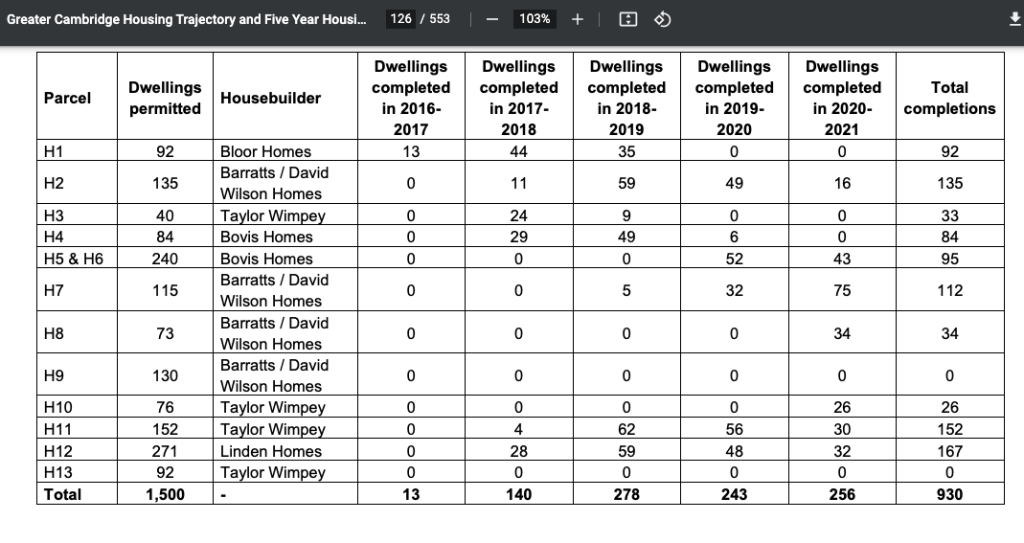 Greater Cambridge Housing Trajectory and Five Year Housing Land Supply Report, p19, published 01 April 2022