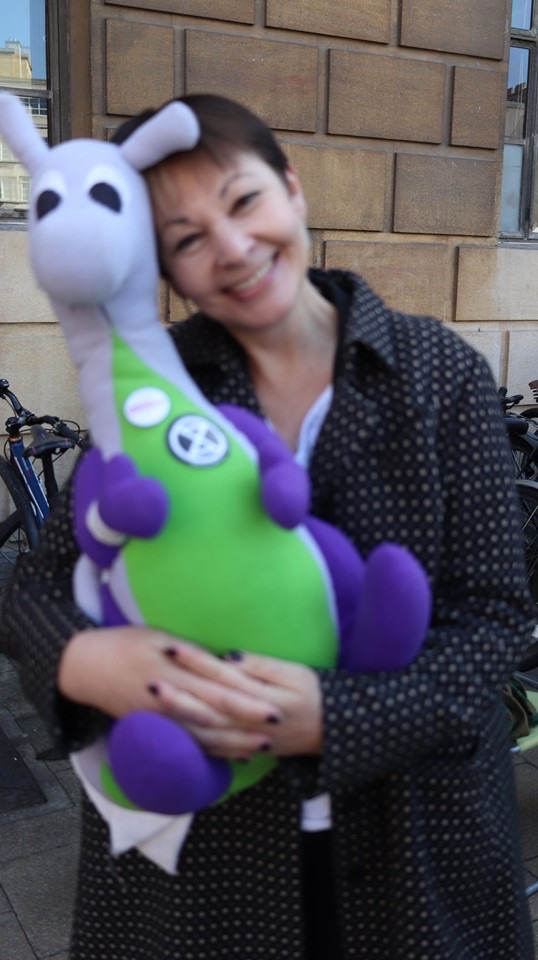 Prior to this, Mr Speaker admonished ministers (again) for failing to come forward with a ministerial statement on the Heatwave – have a listen to him here. Which only made things worse for them because Caroline Lucas (pictured below with Puffles) tabled an Urgent Question which he granted. Urgent questions grant MPs more time to question ministers than ministerial statements.
