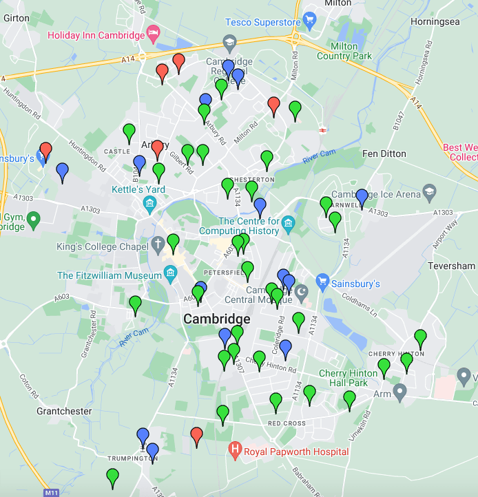 Cambridge City Council put them on a map below.