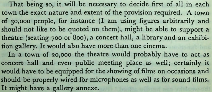 This is particularly interesting for me – so much so that I’ve produced a separate digital document of this chapter: Social Amenities And The Arts In Country Towns By TCPA 1943.