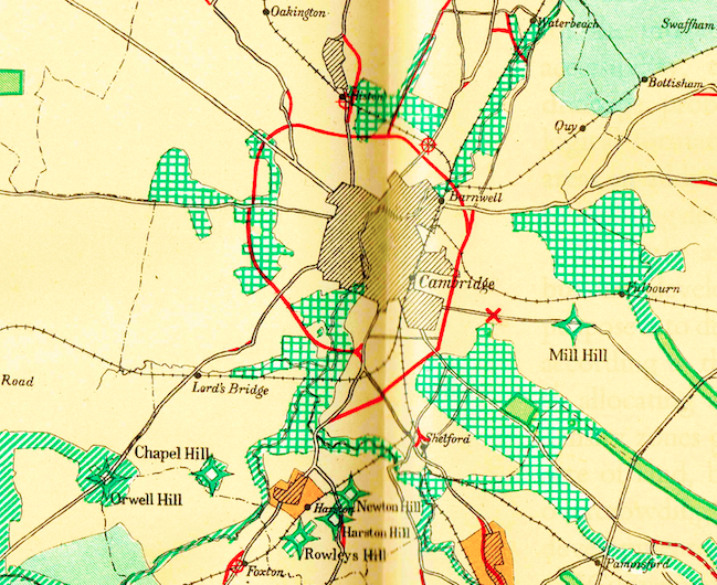 Above – Davidge’s regional plan for Cambridge p61 – where he also identified areas of green space that should remain undeveloped. (Also, spot the lost railway lines!)