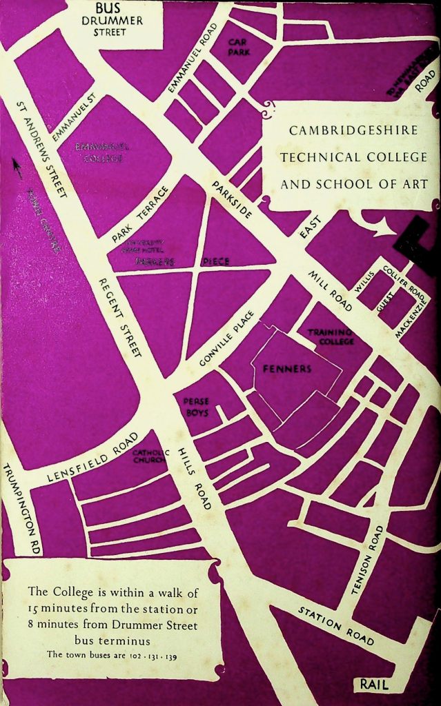 Have a look for yourselves – this arrived earlier – the Cambridgeshire Technical College and School of Arts Calendar 1954-55