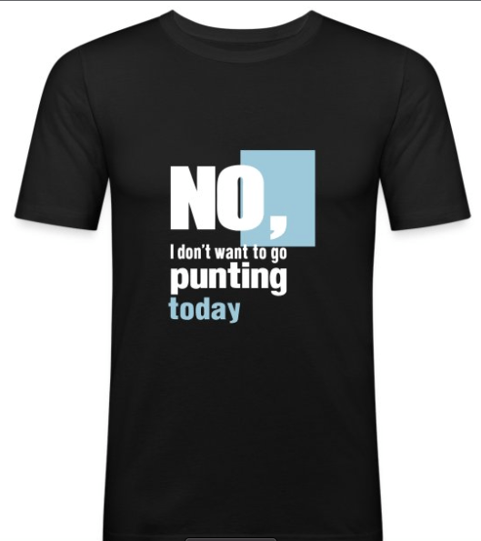 Above – the ***No I don’t want to go punting today!*** t-shirt