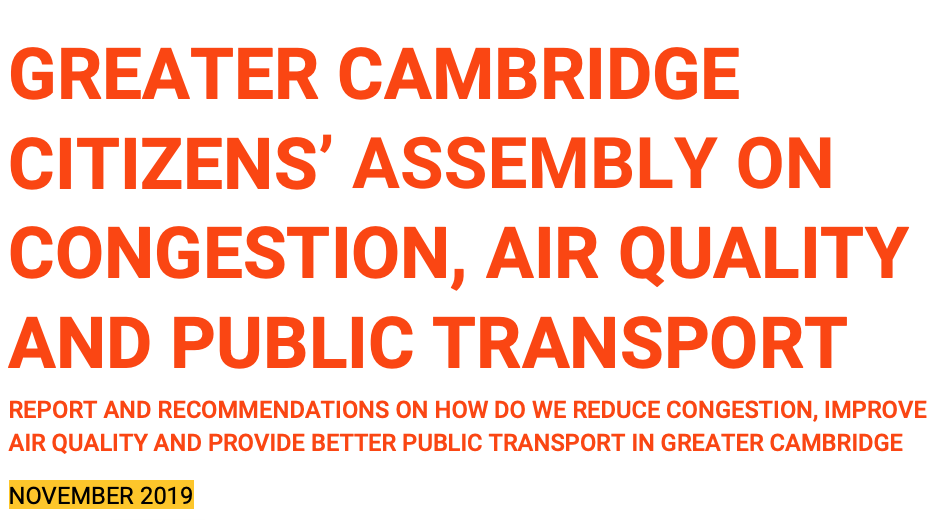 For those of you around in 2019, the Greater Cambridge Partnership commissioned Involve UK to run a Citizens’ Assembly on congestion, air quality, and public transport in & around Cambridge.
