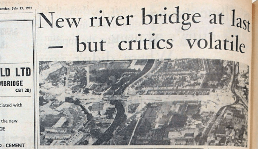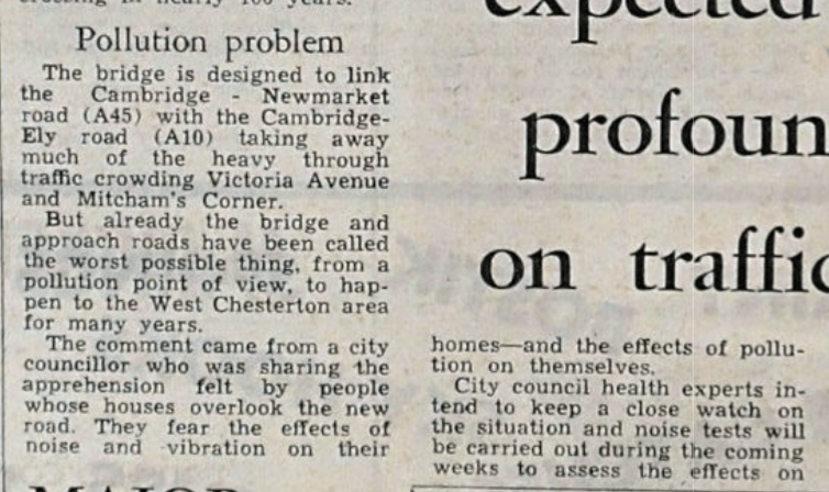 Above: “Already the bridge and approach roads have been called the worst possible thing, from a pollution point of view, to happen to the West Chesterton Area for many years”