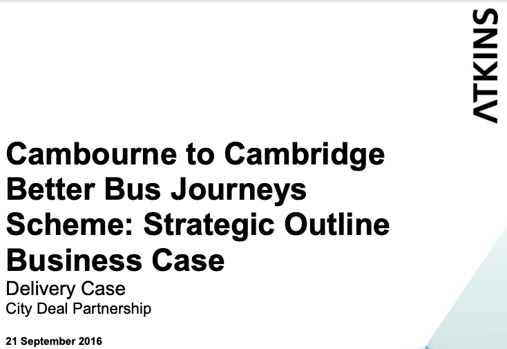In 2016 Atkins (again) came up with the Strategic Outline Business Case for a Cambourne – Cambridge busway – in the face of huge local opposition.