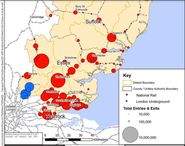 This is one of the reasons why the Government needs a proper and well-thought through and evidenced industrial strategy. Which they don’t have. “Let the markets sort it” is their now discredited cry. Which is also why the report from Transport East on their consultation earlier this year will be important. Even though Transport East does not cover the city of Cambridge, it covers the towns east of Cambridge where many commuters live. There are further documents on their plans here. For example their Regional Evidence Base mentions Cambridge over 60 times (you can read it here – all 245 pages of it). You can see the awkward Cambridge-shaped gap in the maps such as the two below.