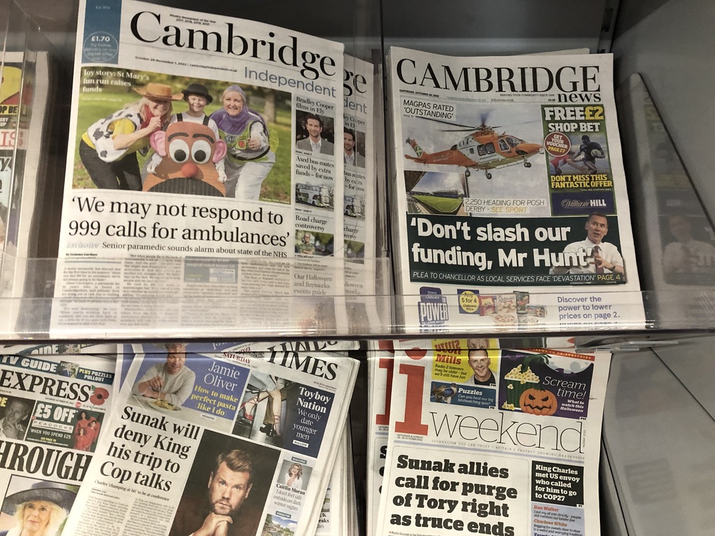 Above – the newspaper rack earlier this evening (29 Oct 2022).