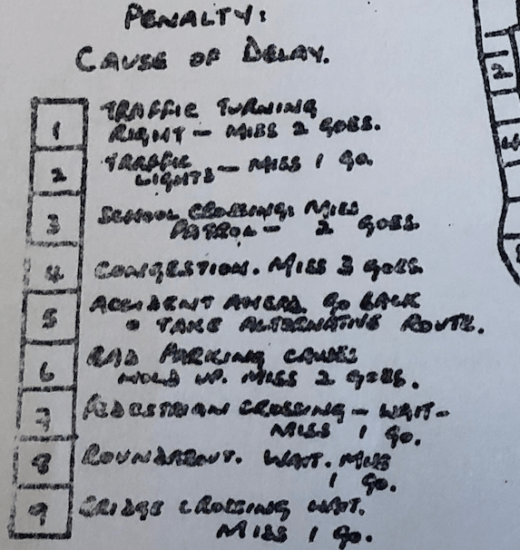 In a race to the workplace – we had a few sizeable factories (such as the PYE works that used to bus workers in from the villages) in those days. And we still had the same traffic problems too – as the penalties for landing on a numbered square tell us!