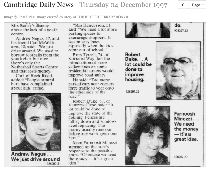 Cambridge News, 04 Dec 1997 via British Newspaper Archive.