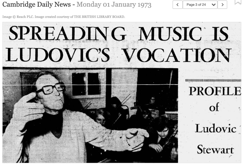 Above – Ludovic Stewart in the Cambridge Evening News from the British Newspaper Archive.
