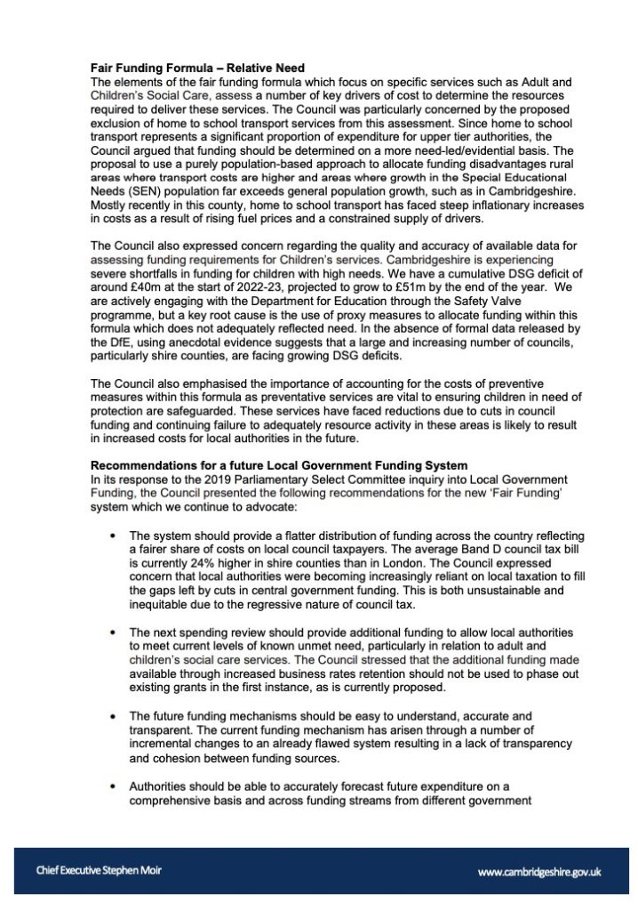 “Cambridgeshire County Council has seen its core funding cut from £143million in 2013/14 to just £68m in 2023/34 – a real terms [accounting for inflation] reduction of 70%”