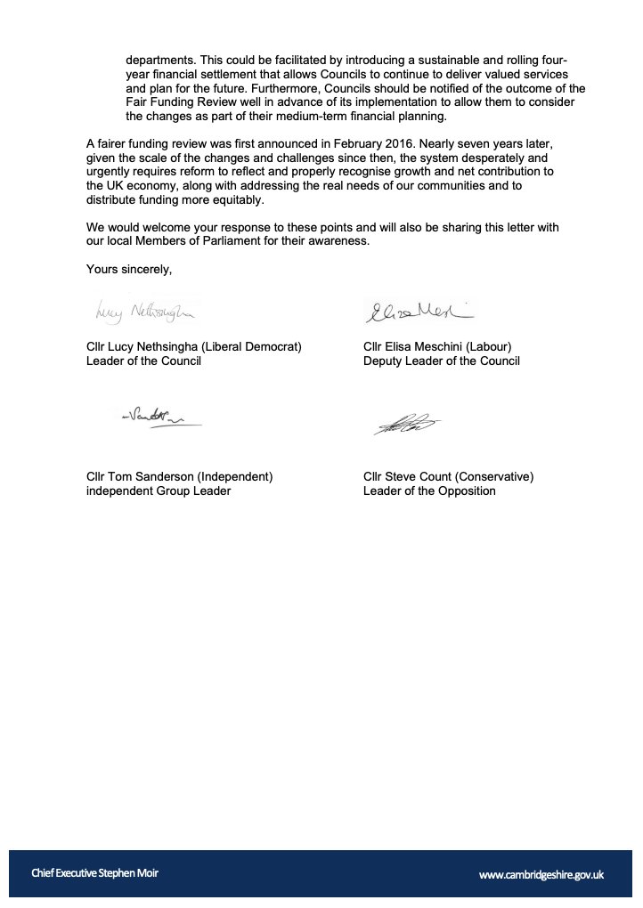 Cambridgeshire County Council to Secretary of State Michael Gove, 03 Feb 2023